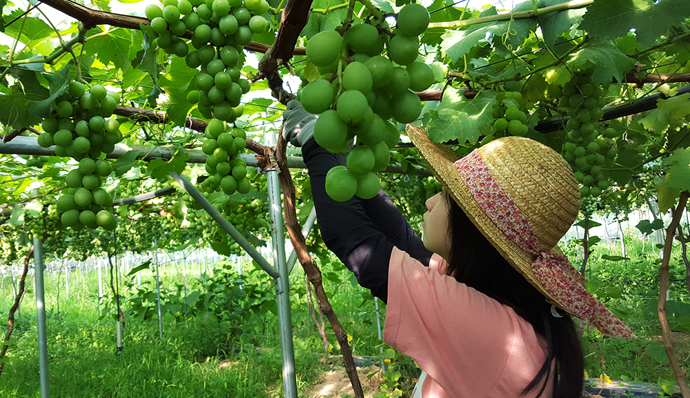 비록 생산량은 줄더라도 가장 좋은 포도를, 또 오래도록 길러내고 싶은 마음이어서 과감하게 적과를 하고 있어요. 포도나무의 가지 하나 당 포도 한송이만을 남기고 전부 떨어내지요. 그러면 자연히 양분의 집중도가 올라가서 포도의 맛과 영양이 좋아질 수 밖에 없답니다.
