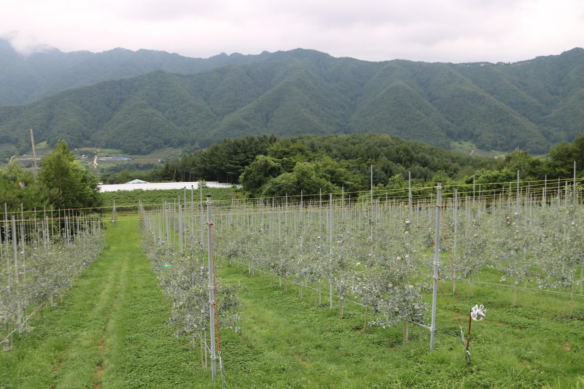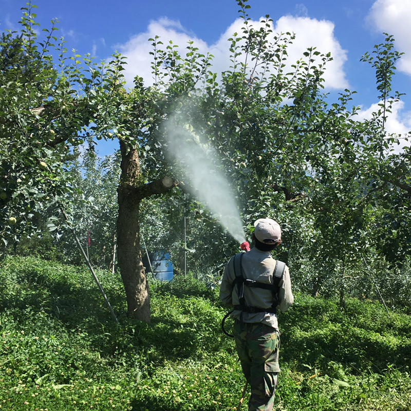 기술 | 천천히 오래두고 드셔도 맛있습니다. 뜨거운 8월의 여름, 아침농장의 사과나무에는 매년 눈꽃이 핍니다. 마치 하얀 눈으로 뒤덮인 것 같이 보이는 이유는 *칼슘보르도액을 살포해주기 때문인데요. 코덱스(국제식품규격위원회)에서 인증한 친환경자재인 보르도액을 사과나무 전체에 코팅해줌으로써 벌레와 병원균으로부터 사과와 잎을 보호해줍니다. 또한 수확 후 사과의 보존기간을 늘려주기 때문에 천천히 사과 본연의 맛을 즐기실 수 있습니다.