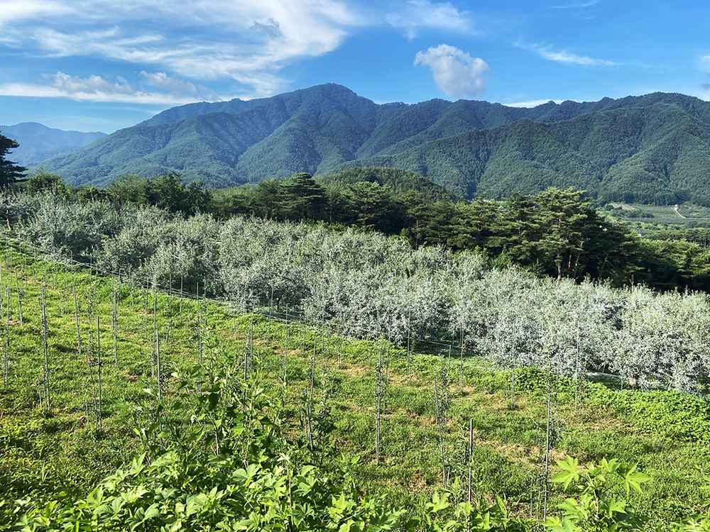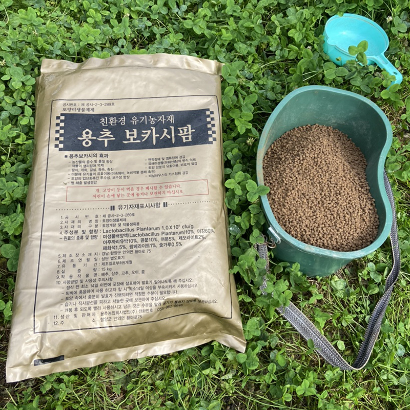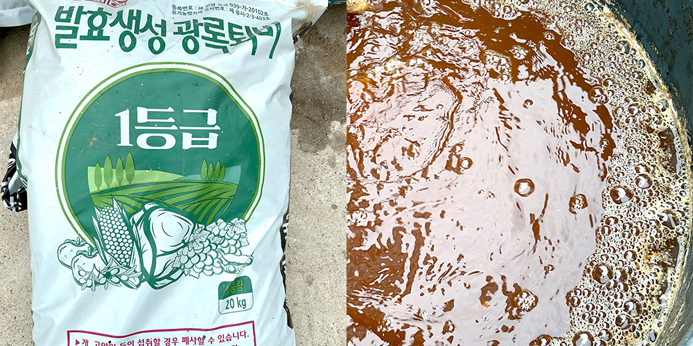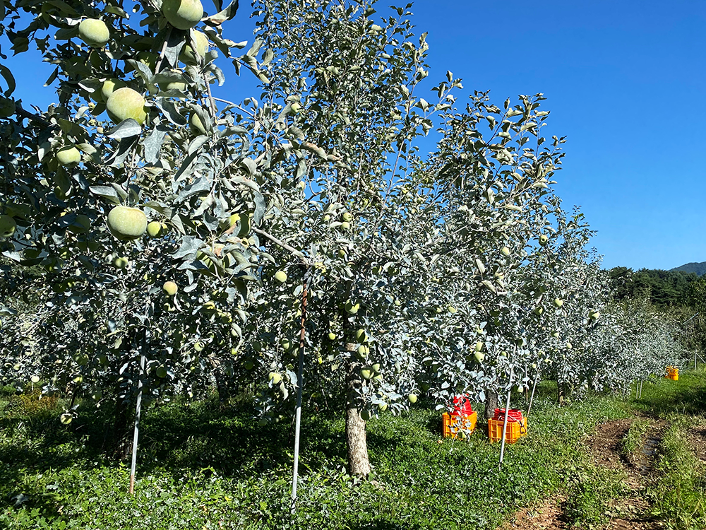 바닷물과 유기농 발효퇴비까지 울진 죽변항에서 떠온 바닷물을 20배 정도 희석하여 사과나무에 줍니다. 바닷물에 있는 다양한 미네랄이 사과의 건강한 성장을 돕는다고 합니다. 1등급의 유기농퇴비를 호기성 발효과정을 통해 땅에다가도 주고 사과나무 잎에도 뿌려줍니다. 양분과 다양한 미생물들이 있어서 병균 발생을 억제하는 역할을 합니다.