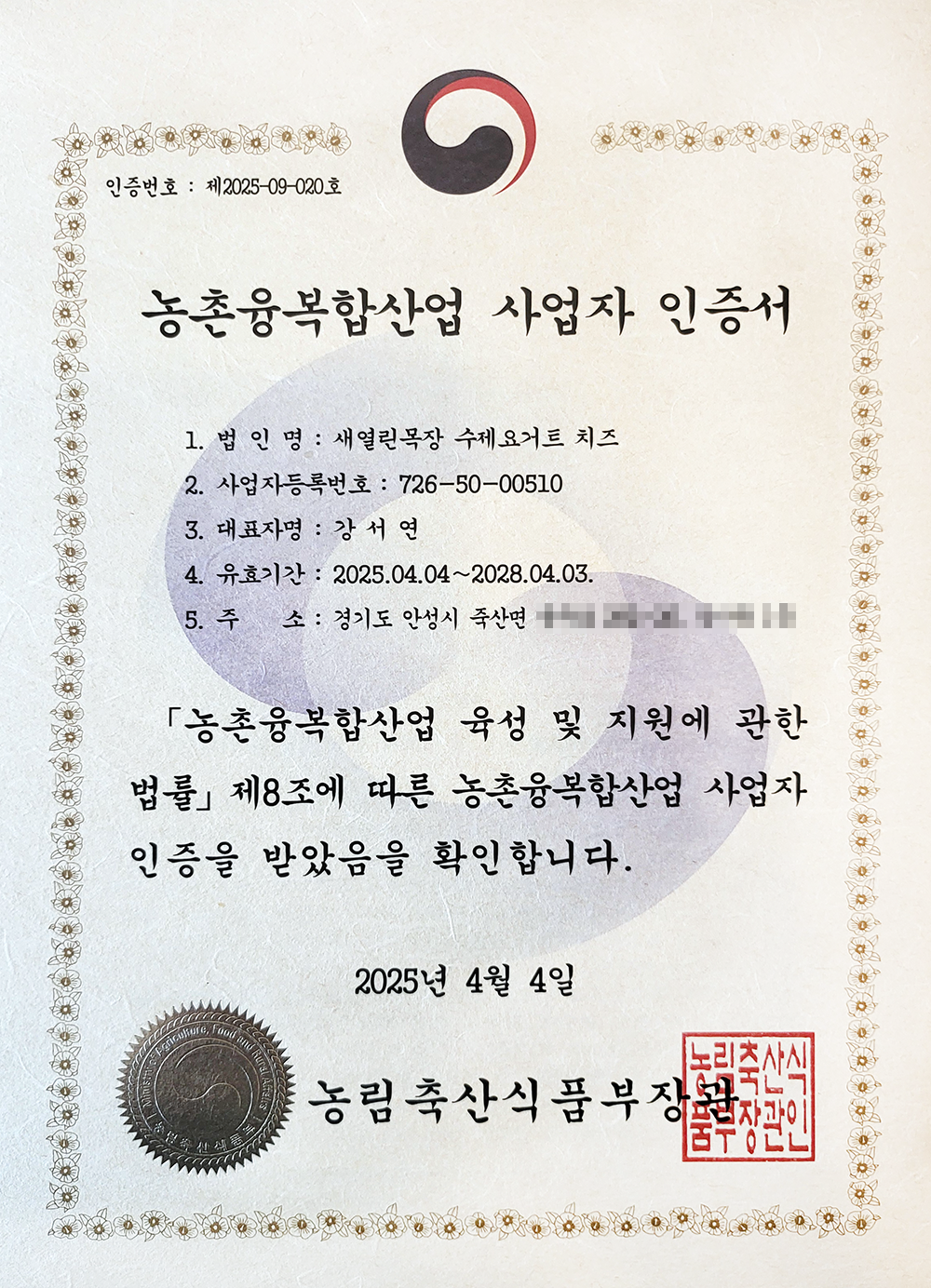 마이스터대학 축산전공을 시작으로 축산과학원, 충남대 전국의 유제품을 만드는 교육을 반복해서 꾸준히 공부합니다. 농부의 유일한 꿈은 ‘무언가를 계속 개발하려고 노력을 멈추지 않는 곳’이 되는 것입니다. 유가공에 적합한 저지종을 중심으로 다양한 제품으로 유제품이 중심이 되는 공간을 만들고 싶습니다.