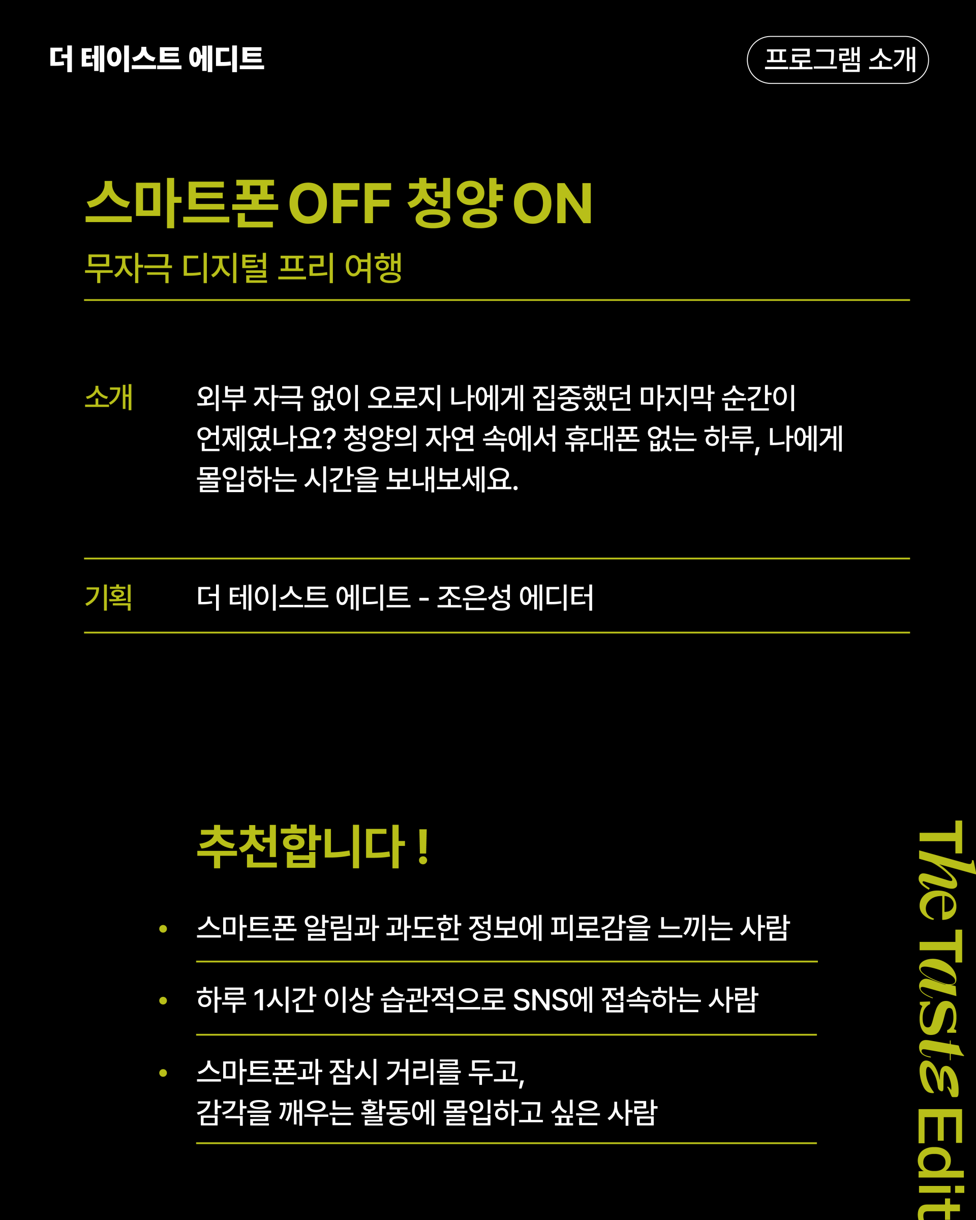 ※ 해당 투어는 핸드폰을 사용하지 않는 투어이므로 투어 전 핸드폰을 수거하여 끝날 때까지 한곳에 보관합니다. 이에 동의하시는 분만 예약해 주세요,