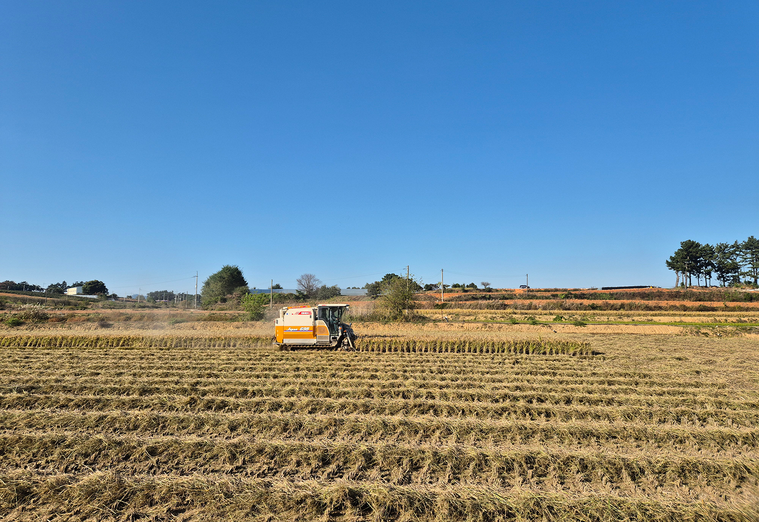 기후 변화 대응의 시작은 내 땅 내 작물을 이해하는 것부터 정동표 농부님은 모내기를 10일 이상 늦춰 심습니다. 천혜진선향은 중만생종(늦게 수확하는) 품종입니다. 중만생종은 수확기에 너무 뜨겁지 않은 온도에서 수확해야 하는데요. 여름이 길고 가을이 짧아진 최근의 기후 변화와 품종 특성을 고려한 결정입니다. 일정 시기에 농약을 하는 관행농 방식이기는 하나, 벼에 좋은 것이라면 아끼지 않고 넣었습니다. 좋은 쌀을 맛보여 드리고 싶은 마음으로 길렀습니다. 이 품종을 자가채종(볍씨를 받아 다음해 다시 심음)해서 농사 지은 지 4년 정도 되어서 품종 고유의 풍미에 차이가 있을 수 있습니다. 차이를 최소화 하기 위해 별도의 농지에서 단일 품종을 심어 관리합니다.