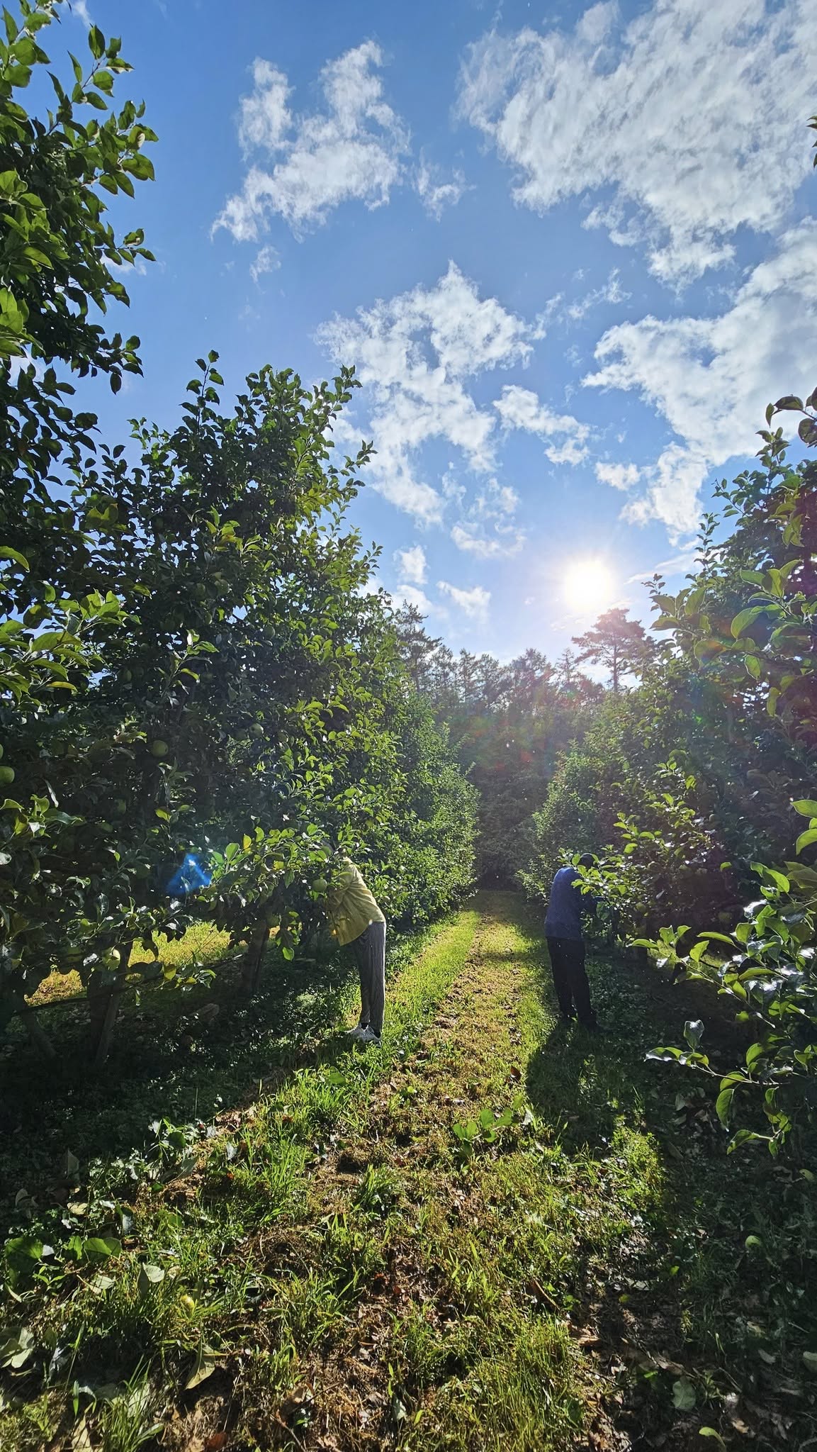 제초제, 비대제, 착색제 없이. 농약은 최소로 사과 밭이 높은 곳에 있다보니 서늘한 편이고 공기 흐름도 좋습니다. 자연스레 병충해도 적습니다. 정말 필요한 시기가 아니면 농약은 사용하지 않고 되도록 적게 씁니다. 큰 사과를 만들기 위해 비대제를 사용하지않고 자연스럽게 키웁니다. 초생재배로 풀과 함께 사과를 키우고 풀이 웃자라면 직접 잘라줍니다. 미생물과 작은 곤충들이 살 수 있도록 합니다. 그래야 땅이 건강하고 좋은 사과가 열리기 때문입니다.