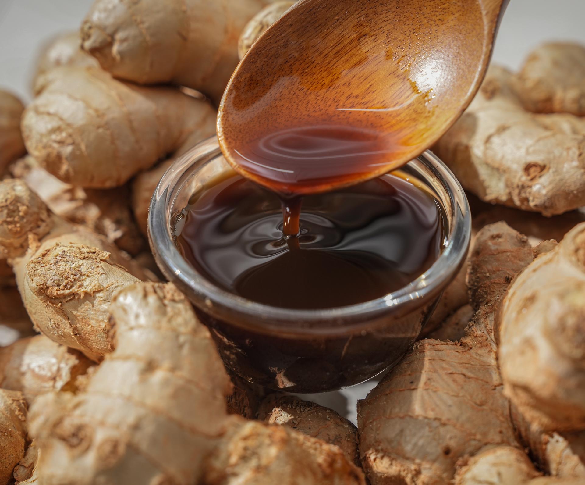 발효과정을 거쳐 만들어지는 생강시럽 토종생강은 착즙을 하면 전분과 물이 잘 분리되지 않습니다. 개량생강은 2시간 만에 4~5cm 전분이 가라 앉는 반면, 토종생강은 3일이 지나도 1mm 정도만 가라앉습니다. 그렇기 때문에 시럽을 만들 때도 남다른 과정이 필요합니다. 토종생강을 착즙 후 마스코바도와 1:1로 섞고 계피를 넣은 후 60~65도의 온도에서 하루 정도 발효과정을 통해 삭힙니다. 이후 진저롤 성분 등의 약성을 높이기 위해 100℃ 이상으로 끓여내면 액상화 발효 시럽이 완성됩니다.