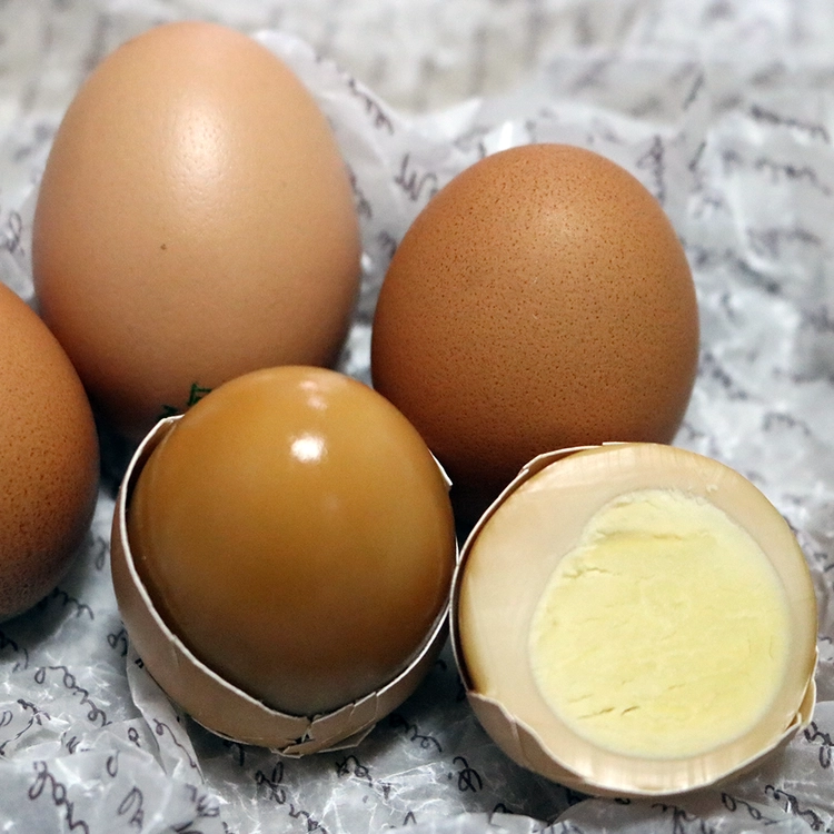 구운란을 만드는 과정 1. 검사 : 생란을 받으면 이물이 있는지 외관검사하고, 지저분할 경우 물 세척 2. 원란보관실 : 원재료인 달걀을 15도 이하로 온도 유지 3. 저온숙성 숙성실 : 최소 24시간부터 48시간까지 48도에서 숙성 4. 황토가마 : 45도씨를 시작으로 110도씨까지 20단계에 걸쳐 14시간 동안 굽기 5. 최종검사 : 깨진 것은 없는지, 압력검사 6. 포장 후 배송