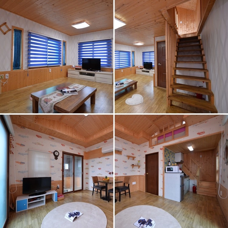 🏠 숙소소개 눈 앞에 바다가 펼쳐지는 See View 숙소 5박 6일 동안 도시언니들이 머무를 숙소는 눈 앞에 바다가 펼쳐지는 곳이예요~ 바다 위로 붉게 물드는 매일매일 다른 노을을 볼 수 있어요~ 갯벌에는 바다그네가 설치되어 있어서 인생샷도 남길 수 있지요~ 자유 시간에는 부대시설인 풀장과 노천탕을 이용하실 수 있어요^^ 무인카페도 있어서 바다를 보면서 커피 한잔의 여유를 즐길 수 있는 그런 곳이랍니다~!! 3인 1실로 사용하며 복층구조입니다.