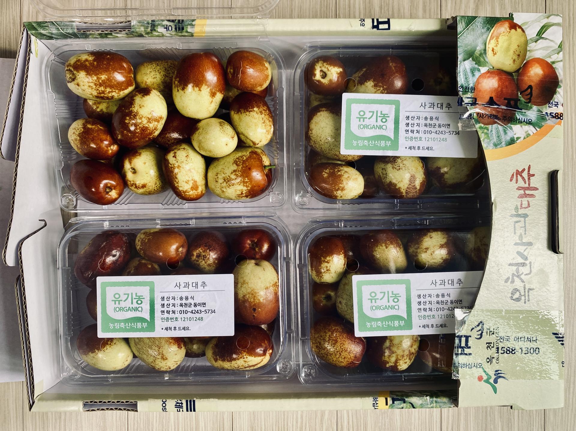 기본정보 | 📑 안내 친환경 유기인증 사과대추 믿을 수 있는 분 소개로 유기농 사과대추를 생산하는 농부님을 만났습니다. 오랫동안 친환경 농사를 지어오셨고 사과대추는 23년부터 조금씩 수확을 시작했습니다. 나무가 3~4 년차 되었네요. 올해는 추석 명절 전 9월에 출고되는 선이양 품종과 작년에 드셨던 사과대추(명절 이후 10월 13일 부터 출고) 두가지를 소개해드립니다.