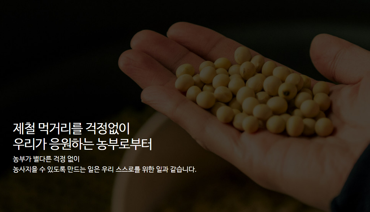 농사펀드는 농부가 안정적으로 농사를 짓게하고, 저희는 좋은 먹거리가 더 나은 삶을 만든다고 믿기에 매일 매일 더 나은 먹거리 환경을 만들기 위해 노력합니다. |