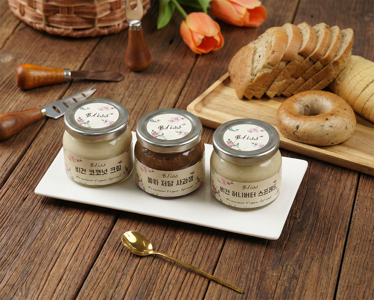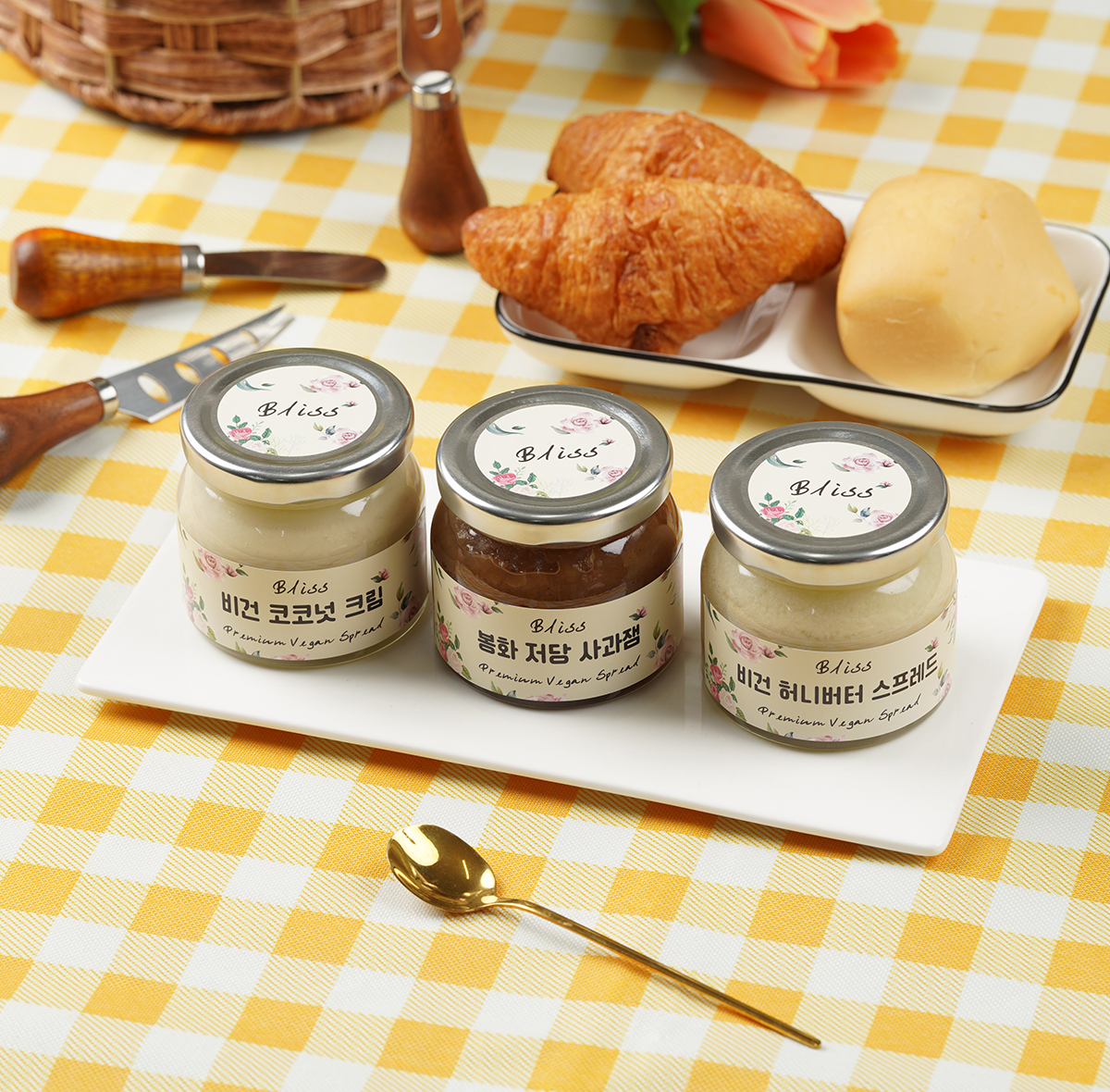 ※ 각 스프레드병을 안전헤게 완충제로 감싸 택배박스에 흔들리지 않게 포장해서 보내드립니다. 선물용 박스가 필요하신 경우 선택옵션에서 선물용 박스를 함께 구매해주세요. 순식물성 스프레드3종 세트와 빵 3종세트