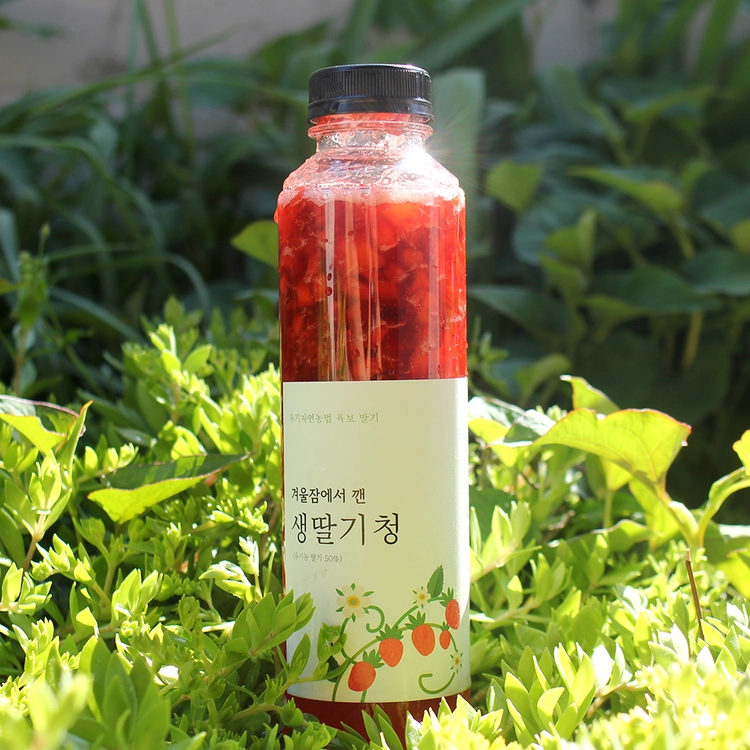 다양하게 활용할 수 있는 딸기청 딸기청은 유기농 육보딸기 50%, 유기농 설탕 45%, 레몬즙 5%로 만들었습니다. 딸기청은 상품성이 떨어지는 딸기를 쓴 것이 아니라 정상적으로 수확한 딸기 중 크기가 큰 딸기를 골라서 만듭니다. 드셨을 때 과육이 씹히는 맛을 느끼셨으면 하는 마음으로요. 딸기청은 샐러드 소스, 리얼 딸기라떼, 탄산수와 함께 시원하게, 요거트와 함께 달콤하게 등 다양하게 활용할 수 있는 아이템입니다.